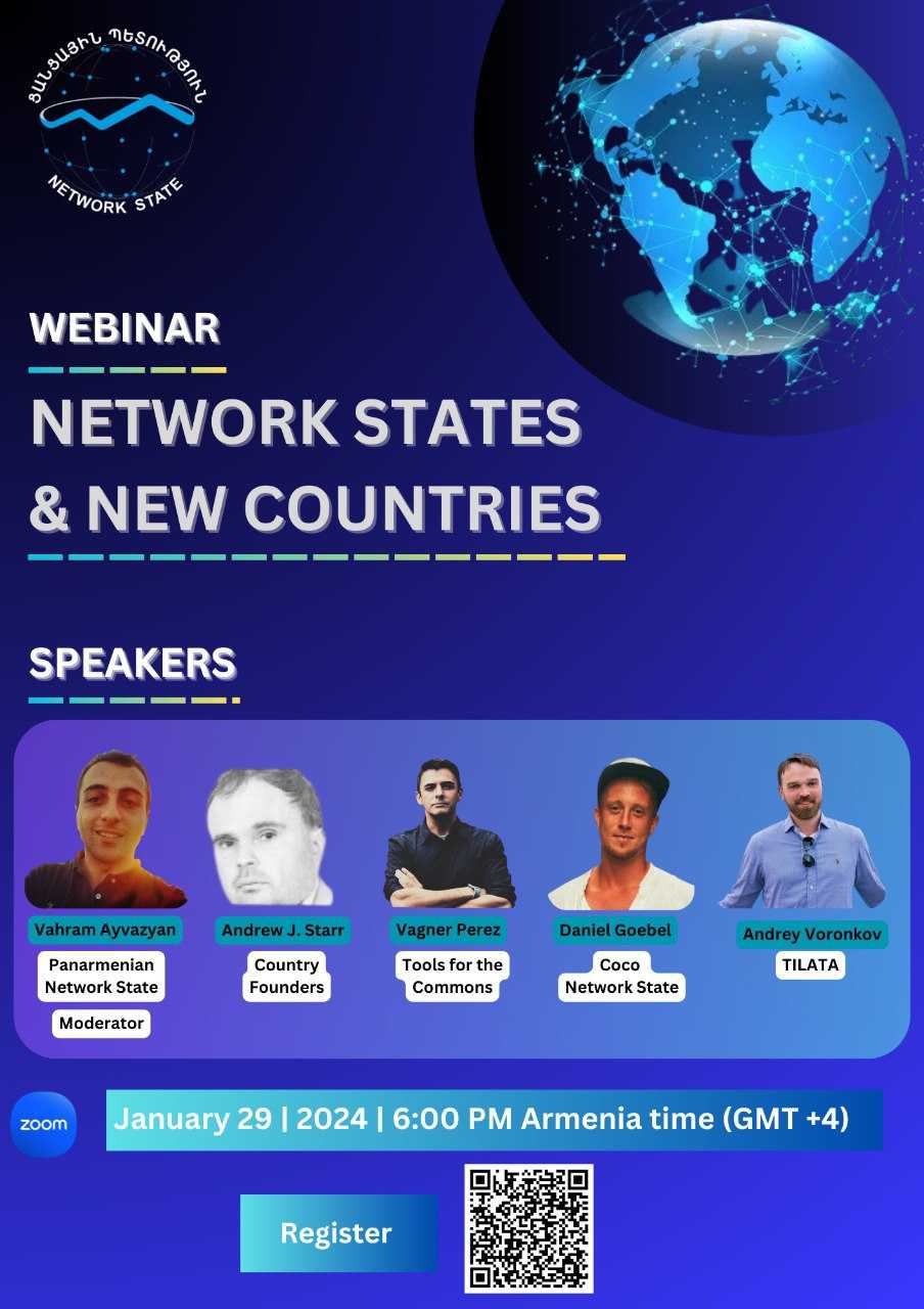 Network State organizes a webinar titled “Network States & New Countries”.